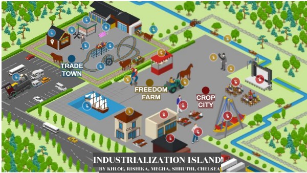 “Eerie Escapades” is an exciting water based log ride that takes you along a realistic model of the Erie Canal with an “eerie” twist. You and a friend board upon a log in the water, and slowly move through the Erie Canal replica. It features scary elements such as drowned boats, whispers of children who died on the canal, and more to show how dangerous sailing along it was. This ride was included because the Erie Canal was extremely significant to the West in the 1800s, as it generated a lot of wealth, facilitated trade, spread ideas, and transported immigrants/settlers. This especially fits with the name of the place “Freedom Farm” as it helped Black Americans spread anti slavery ideas and earn a living. Rishika Dixit