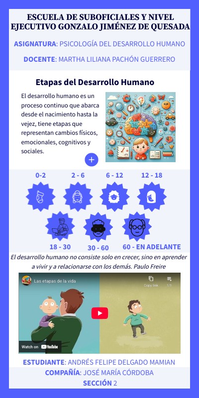 El desarrollo humano es un proceso continuo que abarca desde el nacimiento hasta la vejez, tiene etapas que representan cambios físicos, emocionales, cognitivos y sociales.