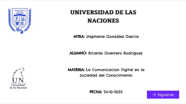 MTRA: Stephanie González García ALUMNO: Ricardo Guerrero Rodriguez MATERIA: La Comunicación Digital en la Sociedad del Conocimiento FECHA: 24-10-2025