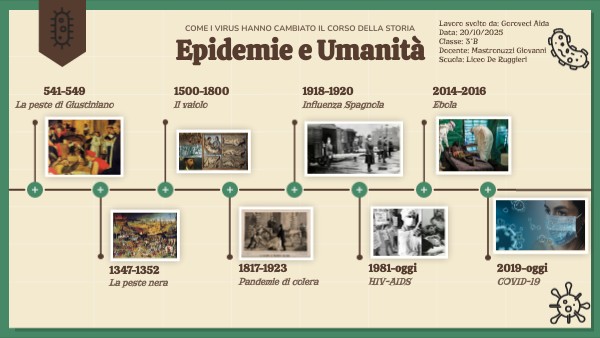 Malattia virale altamente contagiosa causata da un Orthopoxvirus a DNA a doppia elica. Si trasmetteva per via aerea o contatto diretto, infettando le cellule della pelle e delle mucose. Provocava febbre alta, pustole e cicatrici permanenti, con mortalità fino al 30%.Grazie al vaccino di Edward Jenner, il vaiolo è stato eradicato nel 1980, diventando la prima malattia umana eliminata grazie alla scienza.