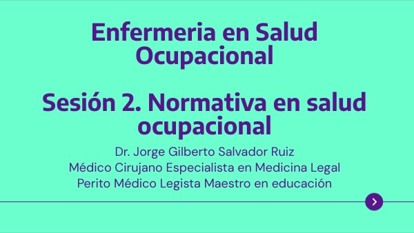 Enfermeria en Salud Ocupacional Sesión 2. Normativa en salud ocupacional