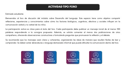 ¡Hola, queridos estudiantes! Les damos la bienvenida a este espacio de intercambio y reflexión correspondiente a la Unidad 2: Desarrollo de los niveles lingüísticos. En esta oportunidad, los invitamos a participar del foro evaluativo “Los primeros pasos del lenguaje”, donde analizaremos juntos cómo se desarrollan las primeras manifestaciones comunicativas del ser humano y su importancia para el posterior desarrollo del lenguaje. El objetivo de esta actividad es reflexionar, debatir y construir conocimiento de manera colaborativa, integrando los conceptos sobre el desarrollo prelingüístico y fonológico.