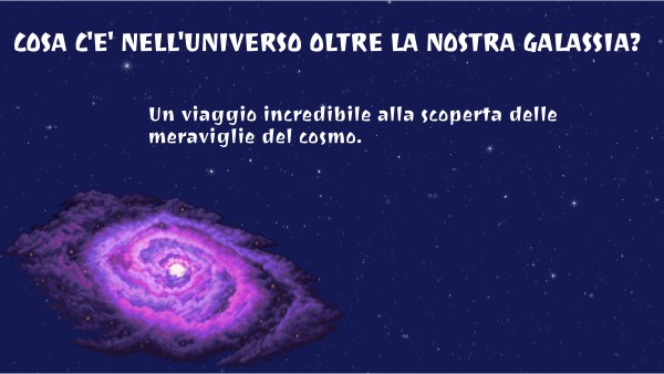 L'universo è tutto ciò che esiste. La nostra galassia si chiama VIA LATTEA, ma è solo una tra miliardi di altre galassie sparse nell'universo! Ognuna contiene miliardi di stelle e mondi da esplorare.