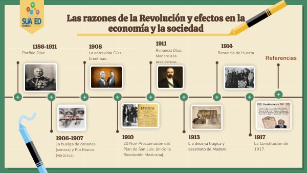 ReferenciasDávila, D. C. (n.d.). Memoria Política de México. Memoriapoliticademexico.org. Retrieved October 26, 2025, from https://www.memoriapoliticademexico.org/Efemerides/3/03031908.html de México, H. (2015). La Revolución Mexicana. Historia Mexicana. https://lahistoriamexicana.mx/siglo-xx/revolucion-mexicana Portillo, L. (2025, October 13). El golpe de Victoriano Huerta y la muerte de Madero. Historiacultural.com. https://www.historiacultural.com/2025/10/golpe-victoriano-huerta-muerte-madero.html Revolución Mexicana. (n.d.). Gob.mx. Retrieved October 26, 2025, from https://www.inehrm.gob.mx/es/inehrm/Revolucion_Mexicana (N.d.-a). Unam.Mx. Retrieved October 26, 2025, from https://sistemas.iibi.unam.mx/cheran/archivospdf/01._Las_huelgas_de_Cananea_y_R%C3%ADo_Blanco.pdf (N.d.-b). Gob.Mx. Retrieved October 26, 2025, from https://congresoweb.congresojal.gob.mx/bibliotecavirtual/libros/antecedentesrevolcucion.pdf