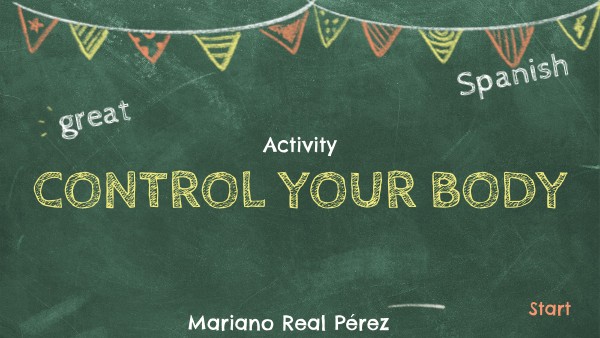 One person stands with their back to the screen. Another person selects an image and, without moving their own body, must give the necessary verbal instructions so that the person with their back to the screen positions themselves in the same way as the person in the image.