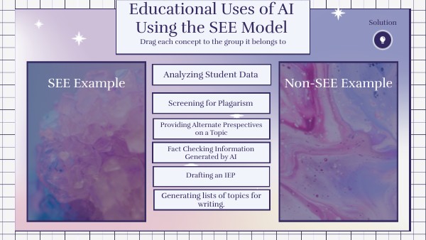 Educational Uses of AI Using the SEE Model