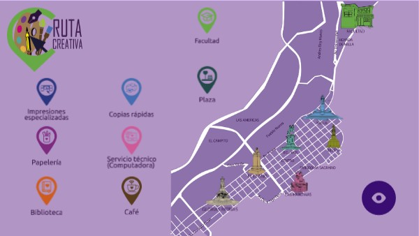 "Ruta Creativa": El mapa esencial para guiar al artista visual y al diseñador gráfico a través de los lugares clave para la elaboración de sus proyectos y tareas.