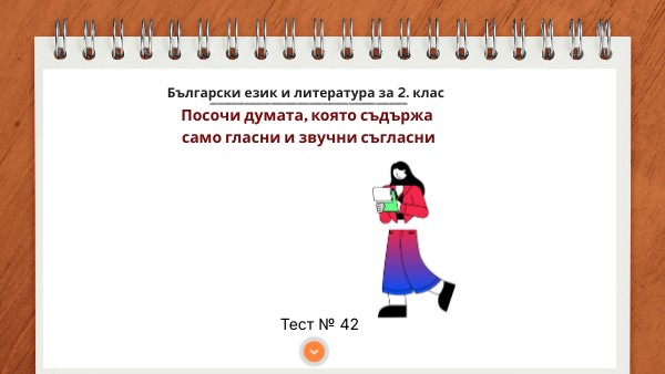 Тест 42. Посочи думата, която съдържа само гласни и звучни съгласни