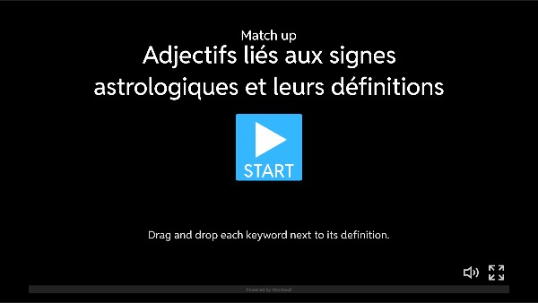 Bélier : 21 mars – 19 avril : courageux, actif, fort Taureau : 20 avril – 20 mai : patient, calme, gentil Gémeaux : 21 mai – 20 juin : sociable, curieux, rapide Cancer : 21 juin – 22 juillet : gentil, sensible, protecteur Lion : 23 juillet – 22 août : généreux, confiant, créatif Vierge : 23 août – 22 septembre : organisé, précis, attentif Balance : 23 septembre – 22 octobre : juste, gentil, sociable Scorpion : 23 octobre – 21 novembre : courageux, fort, passionné Sagittaire : 22 novembre – 21 décembre : optimiste, aventurier, honnête Capricorne : 22 décembre – 19 janvier : patient, sérieux, responsable Verseau : 20 janvier – 18 février : original, intelligent, indépendant Poissons : 19 février – 20 mars : doux, gentil, imaginatif 👩 Personne 1 : Quand es-tu né ? 👨 Personne2: Je suisné le [date]. 👩 Personne 1 : Quand est ton anniversaire ? 👨 Personne 2 : Mon anniversaire est le ... 👩 Personne 1 : Quel est ton signe astrologique ? 👨 Personne 2 : Mon signe est [Bélier, Taureau...]. 👩 Personne 1 : Est-ce vrai que tu es [gentil, courageux, travailleur...] ? 👨 Personne 2 : Oui, c’est vrai. / Non, ce n’est pas vrai.