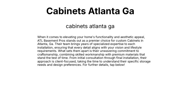 When it comes to elevating your home's functionality and aesthetic appeal, ATL Basement Pros stands out as a premier choice for custom Cabinets in Atlanta, Ga. Their team brings years of specialized expertise to each installation, ensuring that every detail aligns with your vision and lifestyle requirements. What sets them apart is their unwavering commitment to craftsmanship, combining skilled workmanship with premium materials that stand the test of time. From initial consultation through final installation, their approach is client-focused, taking the time to understand their specific storage needs and design preferences. For further details, tap below!