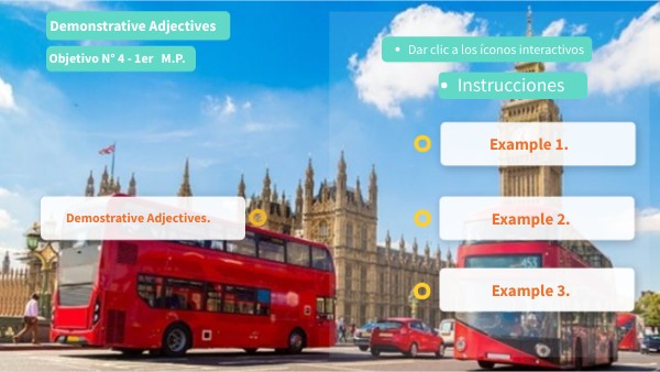 - El contenido de Demostrative Adjectives tiene una ponderación de 1,5pts. El contenido de Example 2 tiene una ponderación de 1 pto. Total: 2,5 ptos.