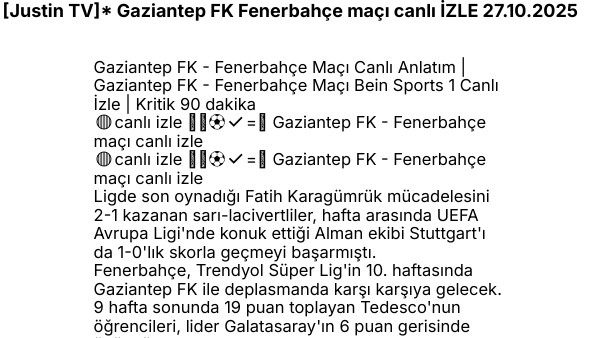[Justin TV]* Gaziantep FK Fenerbahçe maçı canlı İZLE 27.10.2025