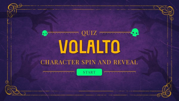 ¡Bienvenidos a Volalto Character Spin and Reveal! Cada jugador tendrá la oportunidad de descubrir qué personaje animado refleja su personalidad. Para empezar, giraremos la ruleta y el azar elegirá quién es el siguiente participante. Cuando te toque, verás varias opciones de personajes en pantalla. Tienes 3 intentos para adivinar cuál es tu personaje secreto. Si después de 3 intentos no logras acertar, revelaremos tu personaje automáticamente. Luego pasamos al siguiente jugador y repetimos el proceso hasta que todos hayan descubierto su personaje secreto. ¡Prepárense para divertirse y descubrir su lado animado!”