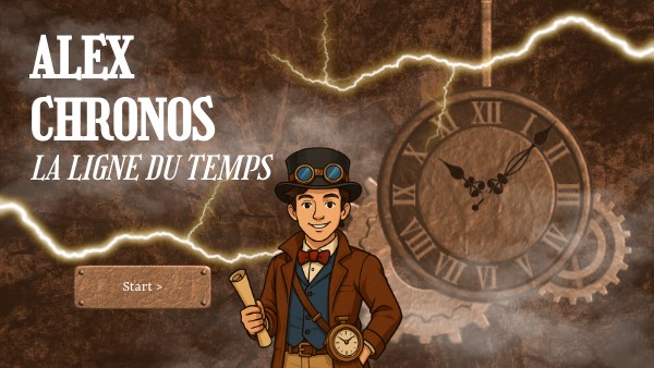 Je suis Alex Chronos, explorateur du temps et gardien de l’Histoire. Quelque chose a mal tourné dans la Machine du Temps 3000 : quatre époques essentielles de la France ont disparu ! Si nous ne les rétablissons pas, tout risque de disparaître... Ta mission : voyager à travers quatre grandes périodes et rétablir les vérités historiques. À chaque époque, tu gagneras un code secret qui rechargera la machine. Prêt ? En route vers l’Histoire !