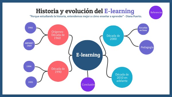 El e-learning se origina junto con el surgimiento de las primeras computadoras, e integración de esta tecnología en la educación. Creación del primer sistema de e-learning por Donald Bitzer en la Universidad de Illinois llamado "PLATO".