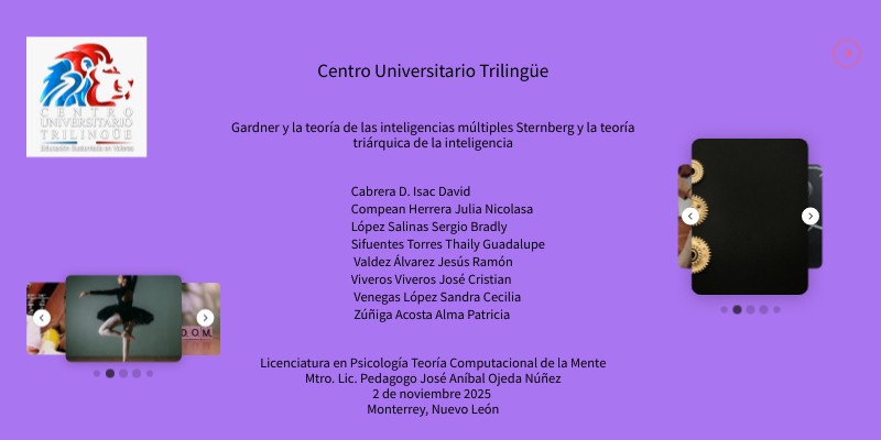 Gardner H. (1995). Inteligencias Múltiples. La teoría en la práctica. Paidós. Gardner H. (2015). Inteligencias Múltiples. La teoría en la práctica. Paidós. Gregory R. (2012). Pruebas Psicológicas. Historia, Principios y aplicaciones. Pearson. Sexta edición. Mesias L. (2025). La Teoría de las Inteligencias Múltiples. Coppel Tx. Prieto M., Stenberg R. (1991). La teoría Triárquica de la inteligencia; Un modelo que ayuda a entender la naturaleza del retraso mental. Rvta. Interuniversitaria de Formación del Profesorado, pp. 77-93. Robert J. Sternberg, María D. Prieto y Juan L. Castejón (2000). Análisis factorial confirmatorio del Sternberg Triarchic Abilities Test (nivel-H) en una muestra española: resultados preliminares. ISSN: 0214-9915