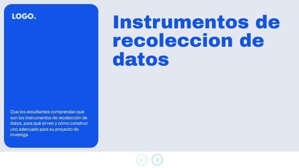 Un instrumento de recolección de datos es una herramienta que usamos para obtener información de manera ordenada y precisa, según el objetivo de nuestra investigación. Ejemplos: Encuesta (preguntas a personas) Lista de cotejo (marcar si se cumple o no una característica) Registro de observación (anotar lo que se observa) Entrevista estructurada (preguntas con respuestas abiertas o cerradas)