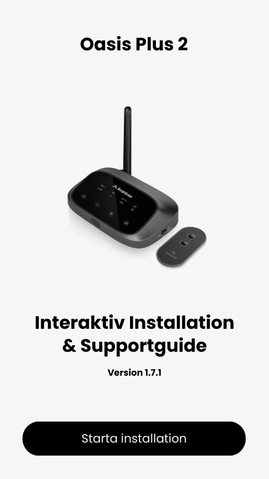 ❶ Ladda ner Avantree Updater på din PC. ❷ Anslut Oasis plus 2 och slå på den. ❸ Installera och starta appen. ❹ Följ stegen i appen.