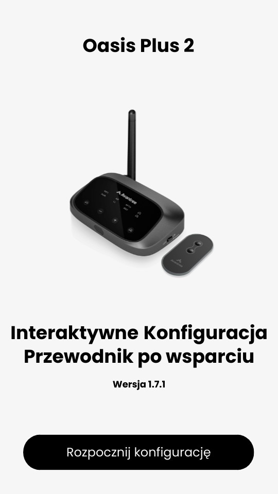 Podłącz kabel audio AUX: Nadajnik (Wejście z TV) ↔️ TV (słuchawki/wyjście audio) Uwaga: Odłącz soundbar, jeśli korzysta z HDMI ARC, aby uniknąć zakłóceń.