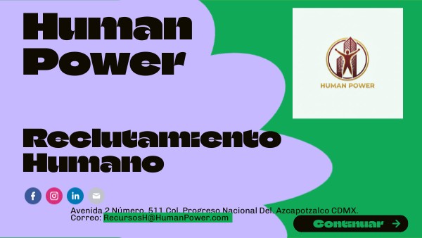Avenida 2 Número. 511 Col. Progreso Nacional Del. Azcapotzalco CDMX. Correo: RecursosH@HumanPower.com