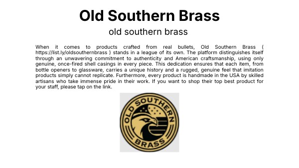 When it comes to products crafted from real bullets, Old Southern Brass ( https://list.ly/oldsouthernbrass ) stands in a league of its own. The platform distinguishes itself through an unwavering commitment to authenticity and American craftsmanship, using only genuine, once-fired shell casings in every piece. This dedication ensures that each item, from bottle openers to glassware, carries a unique history and a rugged, genuine feel that imitation products simply cannot replicate. Furthermore, every product is handmade in the USA by skilled artisans who take immense pride in their work. If you want to shop their top best product for your staff, please tap on the link.