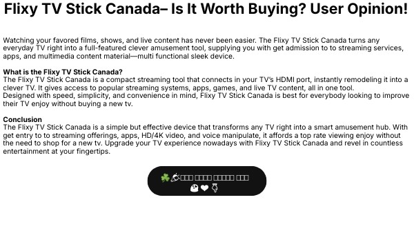 Watching your favored films, shows, and live content has never been easier. The Flixy TV Stick Canada turns any everyday TV right into a full-featured clever amusement tool, supplying you with get admission to to streaming services, apps, and multimedia content material—multi functional sleek device. What is the Flixy TV Stick Canada? The Flixy TV Stick Canada is a compact streaming tool that connects in your TV’s HDMI port, instantly remodeling it into a clever TV. It gives access to popular streaming systems, apps, games, and live TV content, all in one tool. Designed with speed, simplicity, and convenience in mind, Flixy TV Stick Canada is best for everybody looking to improve their TV enjoy without buying a new tv. Conclusion The Flixy TV Stick Canada is a simple but effective device that transforms any TV right into a smart amusement hub. With get entry to to streaming offerings, apps, HD/4K video, and voice manipulate, it affords a top rate viewing enjoy without the need to shop for a new tv. Upgrade your TV experience nowadays with Flixy TV Stick Canada and revel in countless entertainment at your fingertips.