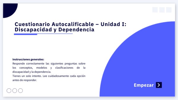 Cuestionario Autocalificable – Unidad I: Discapacidad y Dependencia