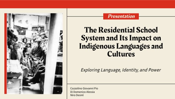 Between 1880 and 1983, the system of Residential Schools in Canada — through forced assimilation, the erasure of Indigenous cultures, the separation of children from their families, and the prohibition of Indigenous languages — deeply disrupted the transmission of language and cultural identity. This systematic silencing not only stripped generations of their sense of belonging but also produced enduring intergenerational trauma, revealing the profound connection between language, identity, and power.