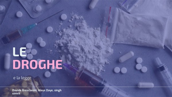 2. Droghe Illegali Esempi: Cannabis – In Italia è illegale ,legale per uso medico controllato. Può alterare la percezione e la memoria.Cocaina – Stimolante potente; causa euforia seguita da forte depressione e rischio di infarto.Eroina – Oppiaceo derivato dalla morfina; causa dipendenza grave e rischio overdose.E moltre altreLe droghe legali 1. Cosa sono Le droghe legali sono sostanze che si possono comprare e usare senza violare la legge, ma che possono comunque danneggiare la salute e creare dipendenza.