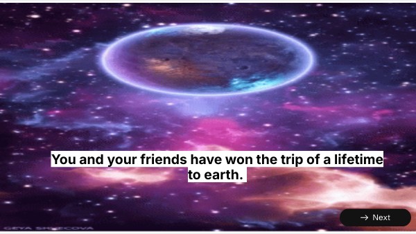 You and your friends have won the trip of a lifetime to earth.