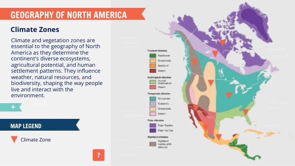 Climate and vegetation zones are essential to the geography of North America as they determine the continent's diverse ecosystems, agricultural potential, and human settlement patterns. They influence weather, natural resources, and biodiversity, shaping the way people live and interact with the environment.