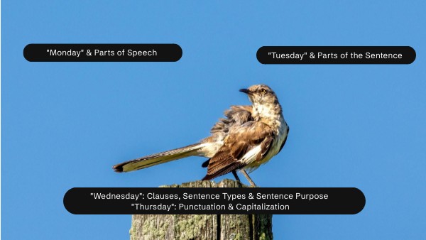 "Wednesday": Clauses, Sentence Types & Sentence Purpose "Thursday": Punctuation & Capitalization