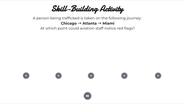 A person being trafficked is taken on the following journey: Chicago → Atlanta → Miami At which point could aviation staff notice red flags?