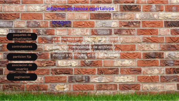 se almacena en el sistema operativo en el formato imaging (wtm) y representa una coleccion comprimidas de archivos y carpetas de referencias necesarios para instalar y configurar el S.O. en el equipo.