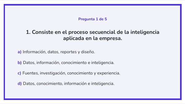 2. La inteligencia de negocios promueve que así se le reconozca a la organización: