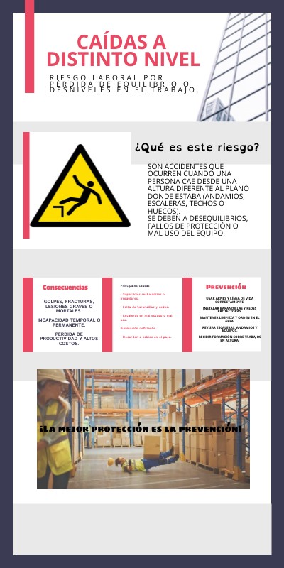 Riesgo laboral por pérdida de equilibrio o desniveles en el trabajo.