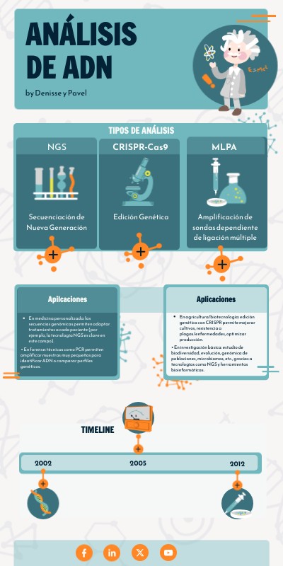 • En forense: técnicas como PCR permiten amplificar muestras muy pequeñas para identificar ADN o comparar perfiles genéticos.Timeline