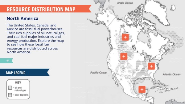 The United States, Canada, and Mexico are fossil fuel powerhouses. Their rich supplies of oil, natural gas, and coal fuel major industries and energy production. Explore the map to see how these fossil fuel resources are distributed across North America.