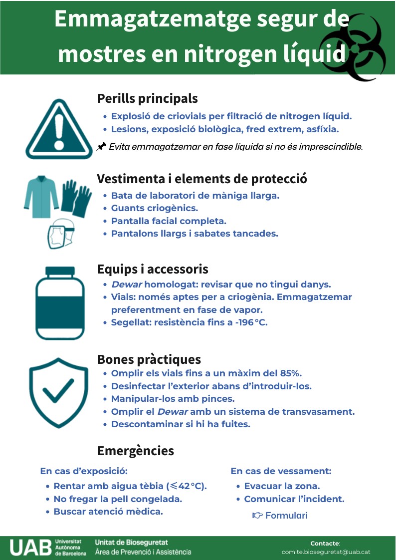 - Vials: només aptes per a criogènia, emmagatzemar preferentment en fase de vapor.