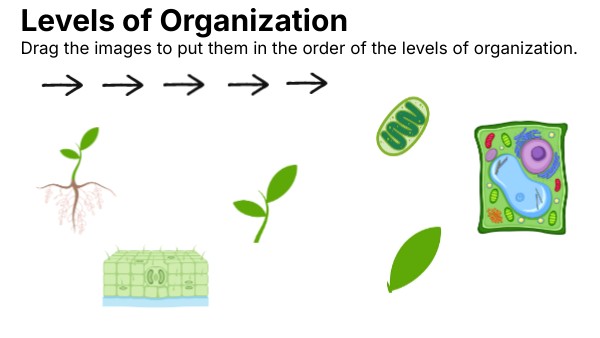 Drag the images to put them in the order of the levels of organization.
