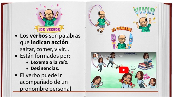 - Los verbos son palabras que indican acción: saltar, comer, vivir...