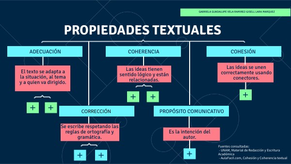 Fuentes consultadas: - UNAM, Material de Redacción y Escritura Académica - AulaFacil.com, Cohesión y Coherencia textual
