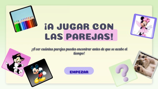 Hoy vamos a jugar a un divertido reto visual: deberás encontrar las parejas de imágenes iguales. Pero atención... ¡el tiempo corre! Tendrás un temporizador para completar el desafío, así que observa con atención, usa tu memoria y actúa rápido.