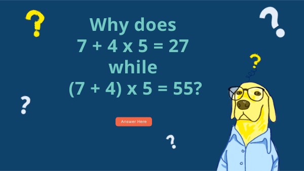 Why does 7 + 4 x 5 = 27 while (7 + 4) x 5 = 55?