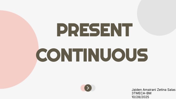 The present continuos is an important verb tense shows actions that are happening righ now or around the present time. It is also to talk about future plans that are alredy organized and confirmed. The basic formula is simple: to be (am/is/are)+ verb + ing .