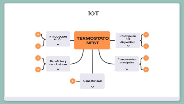 El termostato inteligente Nest, desarrollado por Google, es un dispositivo IoT diseñado para optimizar el consumo energético en el hogar. Detecta la temperatura ambiente y aprende los hábitos del usuario para ajustar automáticamente la climatización. Sus componentes principales incluyen sensores de temperatura, humedad y movimiento, una pantalla LCD, procesador ARM y conectividad Wi-Fi. A través de la aplicación móvil o comandos de voz, el usuario puede monitorear y controlar el sistema desde cualquier lugar. Su integración con otros dispositivos del ecosistema Google Home permite crear ambientes confortables y eficientes energéticamente.