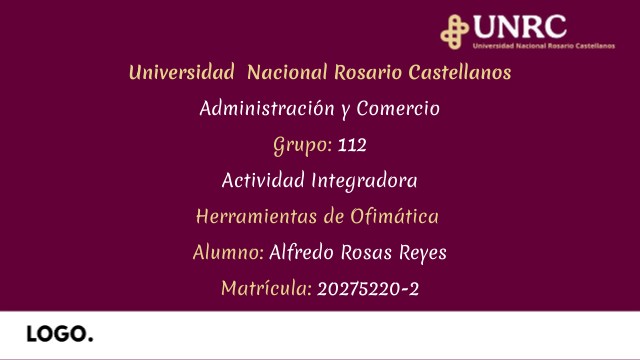 Universidad Nacional Rosario Castellanos Administración y Comercio Grupo: 112 Actividad Integradora Herramientas de Ofimática Alumno: Alfredo Rosas Reyes Matrícula: 20275220-2