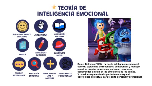 1. IMPORTANCIA DE LA EDUCACIÓN EMOCIONAL DESDE LA INFANCIA: Goleman destaca que enseñar inteligencia emocional desde pequeño es escencial para el desarrollo integral. Los niños aprenden observando cómo los adultos gestionan sus emociones.2. ROL DE LA FAMILIA Y LA ESCUELA: Son los principales modelos emocionales y espacios de aprendizaje. Deben fomentar el autoconocimiento, la empatía, el autocontrol y la comunicación. 3. RECONOCER Y EXPRESAR EMOCIONES: Educar emocionalmente significa ayudar al niño a identificar lo que siente, expresarlo adecuadamente y comprender las emociones de los demás 4. PREVENCIÓN Y BIENESTAR: La educación emocional previene la violencia, el bullying y los problemas de conducta. Mejora la autoestima, el clima escolar y el rendimiento académico.