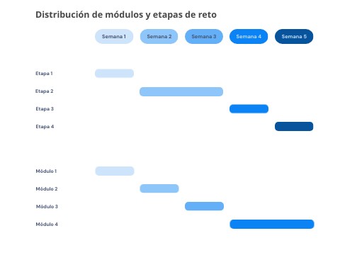 Distribución de módulos y etapas de reto