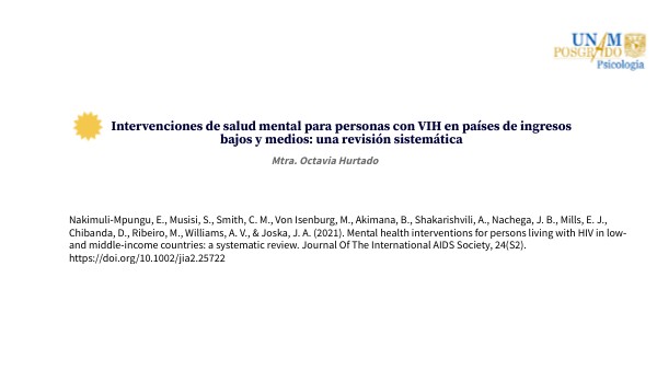 Intervenciones de salud mental para personas con VIH en países de ingresos bajos y medios: una revisión sistemática